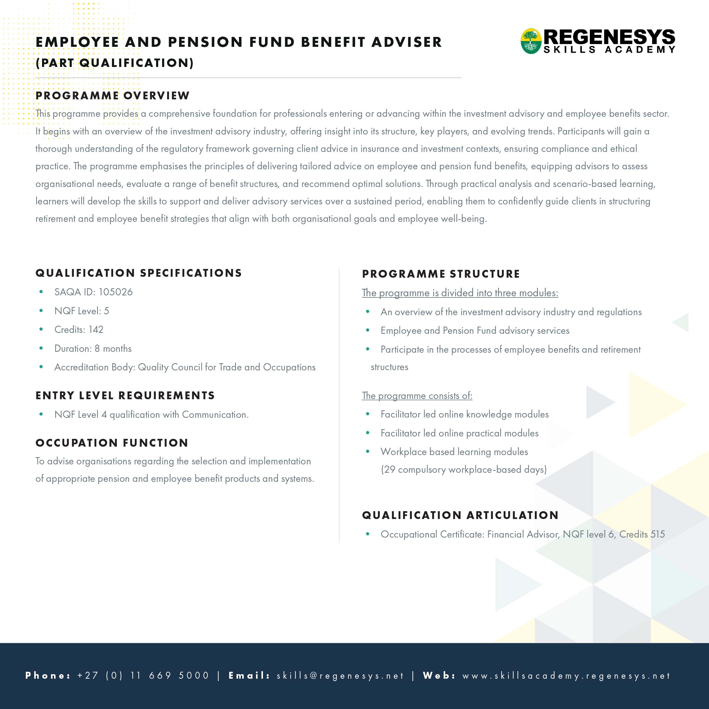 This programme provides a comprehensive foundation for professionals entering or advancing within the investment advisory and employee benefits sector. It begins with an overview of the investment advisory industry, offering insight into its structure, key players, and evolving trends. Participants will gain a thorough understanding of the regulatory framework governing client advice in insurance and investment contexts, ensuring compliance and ethical practice. The programme emphasises the principles of delivering tailored advice on employee and pension fund benefits, equipping advisors to assess organisational needs, evaluate a range of benefit structures, and recommend optimal solutions. Through practical analysis and scenario-based learning, learners will develop the skills to support and deliver advisory services over a sustained period, enabling them to confidently guide clients in structuring retirement and employee benefit strategies that align with both organisational goals and employee well-being.