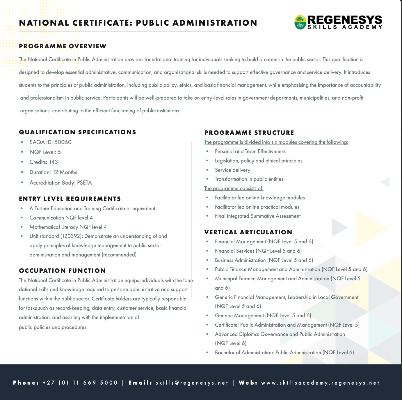 • Certificate: Public Administration and Management (NQF Level 5)
