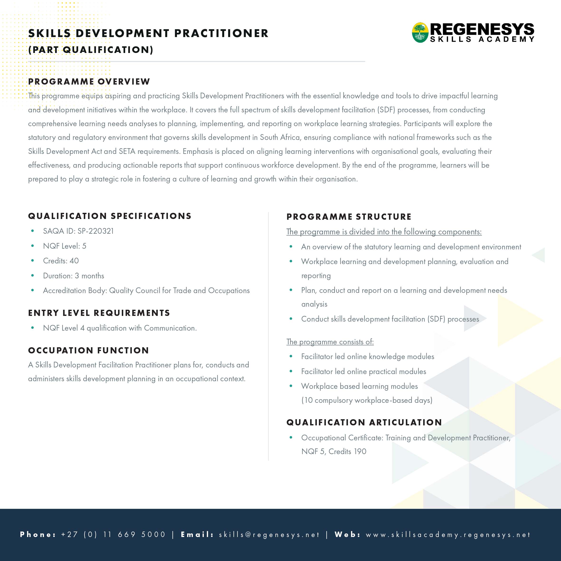 This programme equips aspiring and practicing Skills Development Practitioners with the essential knowledge and tools to drive impactful learning and development initiatives within the workplace. It covers the full spectrum of skills development facilitation (SDF) processes, from conducting comprehensive learning needs analyses to planning, implementing, and reporting on workplace learning strategies. Participants will explore the statutory and regulatory environment that governs skills development in South Africa, ensuring compliance with national frameworks such as the Skills Development Act and SETA requirements. Emphasis is placed on aligning learning interventions with organisational goals, evaluating their effectiveness, and producing actionable reports that support continuous workforce development. By the end of the programme, learners will be prepared to play a strategic role in fostering a culture of learning and growth within their organisation.